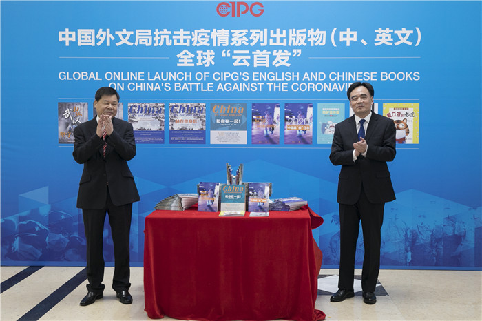 ▲外文局舉行抗擊疫情系列出版物全球“云首發”式。