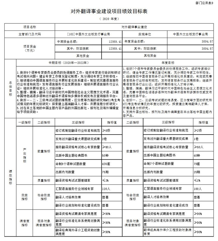 (一)對外翻譯事業建設項目績效目標表