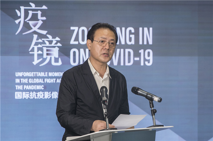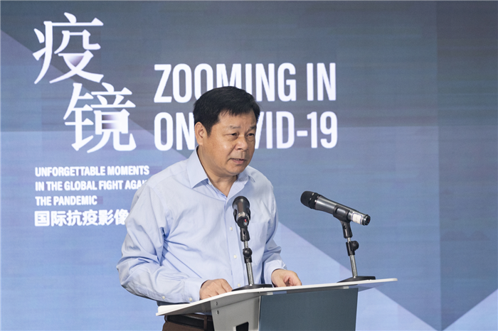 6月29日,中國外文局聯合多國機構主辦的“疫·鏡——國際抗疫影像紀實”云攝影展開幕。中國外文局局長杜占元,中國文聯黨組成員、副主席李前光出席開幕式并作現場致辭。俄羅斯報社長帕維爾·涅戈伊察、韓國亞洲新聞集團總編輯梁圭鉉、意大利特萊卡尼文化集團總裁弗蘭克·蓋洛、墨西哥頭版俱樂部主席何塞·路易斯·烏里韋等外方嘉賓發表視頻致辭,中國外文局副局長兼總編輯高岸明主持開幕式,中國攝影家協會主席李舸以及主承辦單位代表等出席。