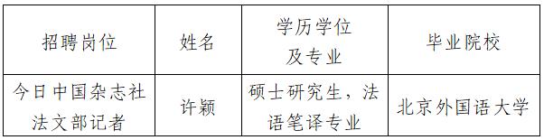 中國外文局所屬今日中國雜志社2020年公開招聘擬聘用人員公示