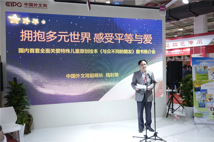 陸彩榮肯定了《與眾不同的朋友》系列繪本的社會價值與社會意義,以及海豚出版社通過出版這套關愛特殊兒童的圖書,體現出來的企業社會責任與擔當。