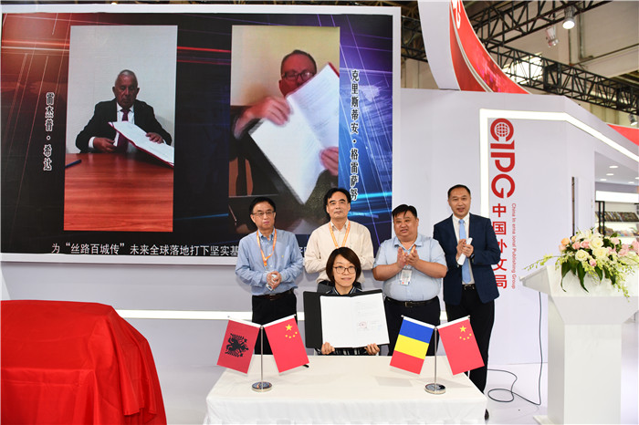 外文出版社與羅馬尼亞出版集團、阿爾巴尼亞凡·諾利出版社舉行“絲路百城傳”叢書多語種國際合作出版備忘錄云簽約儀式