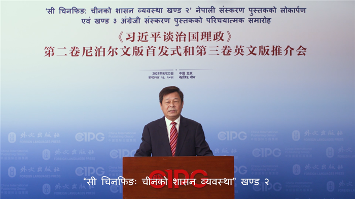 9月23日,《習近平談治國理政》第二卷尼泊爾文版首發式和第三卷英文版推介會在尼泊爾首都加德滿都舉行。此次活動由中國國務院新聞辦公室、尼泊爾總統府、中國外文局、中國駐尼泊爾大使館共同主辦。