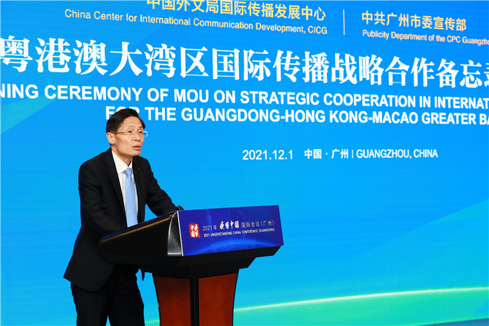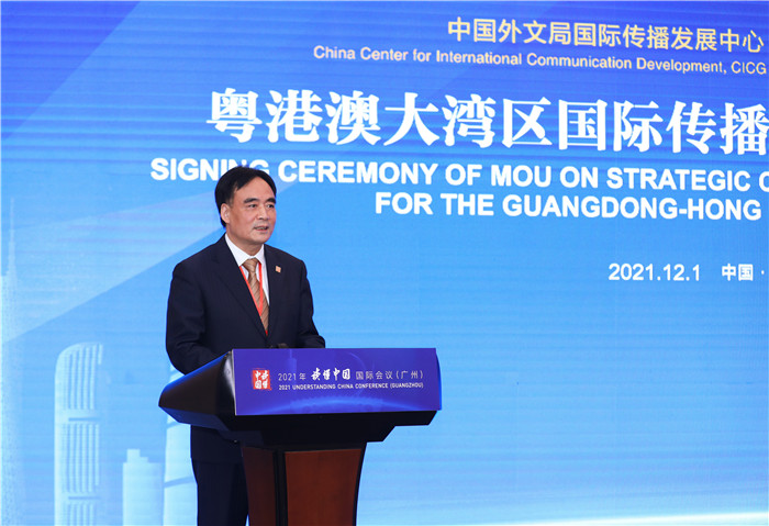 12月1日,中國外文局所屬中國對外書刊出版發行中心(國際傳播發展中心)與廣州市委宣傳部粵港澳大灣區國際傳播戰略合作簽約儀式在2021年“讀懂中國”國際會議(廣州)期間舉行。中國外文局局長杜占元,副局長陸彩榮和廣州市委常委、宣傳部長杜新山出席活動。