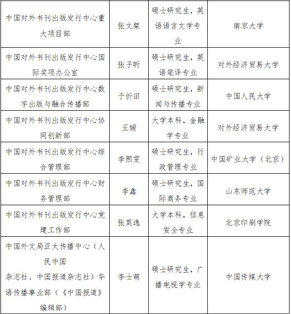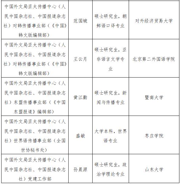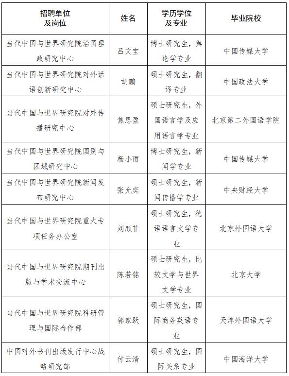 當代中國與世界研究院、中國對外書刊出版發行中心、中國外文局亞太傳播中心2022年公開招聘擬聘用人員公示