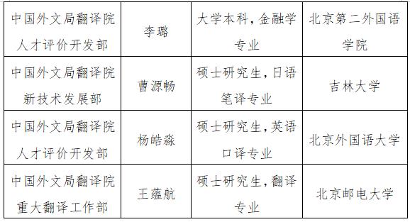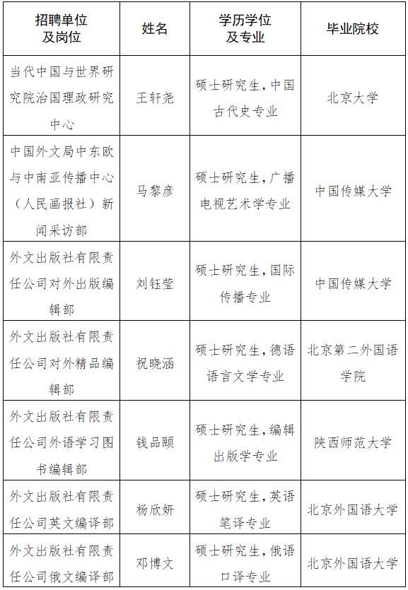 當代中國與世界研究院、中國外文局中東歐與中南亞傳播中心(人民畫報社)、外文出版社有限責任公司、中國外文局翻譯院2022年公開招聘擬聘用人員公示