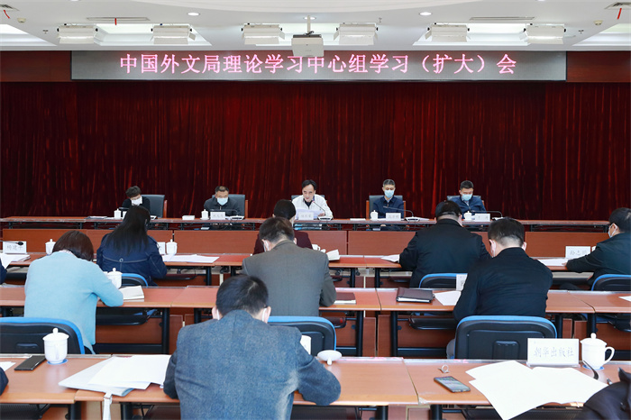 10月17日,中國外文局副局長、機關黨委書記陸彩榮主持召開局理論學習中心組學習(擴大)會議,結合學習黨的二十大報告和《習近平談治國理政》第四卷,深入學習習近平總書記給外文出版社外國專家的回信精神,研究進一步深入貫徹落實的思路和舉措。副局長高岸明、劉大為、于濤出席會議,局副總編輯,局屬各單位、機關各部室主要負責人參加。