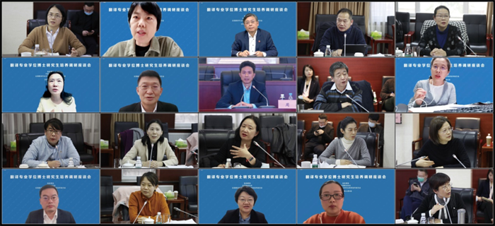 與會人員結合國家發展需求和本單位翻譯人才隊伍現狀,從翻譯專業學位博士生的生源選擇、申請條件、培養方式、課程設置、畢業要求、師資隊伍等方面展開深入交流,提供了寶貴的意見和建議。大家一致認為,翻譯人才是對外講好中國故事,傳播好中國聲音的重要橋梁,對于加快構建中國話語和敘事體系、增強中華文明傳播力影響力具有重要戰略意義。翻譯專業學位博士研究生教育將為加強和改進我國國際傳播能力建設注入新的活力。各相關單位愿持續支持并積極參與到翻譯專業學位博士研究生培養工作之中,發揮自身優勢,協同多方資源,努力在我國全面建設社會主義現代化國家、向第二個百年奮斗目標進軍的新征程上培養一批政治立場堅定、國際視野廣闊、翻譯能力精湛、專業知識過硬的行業精英人才。