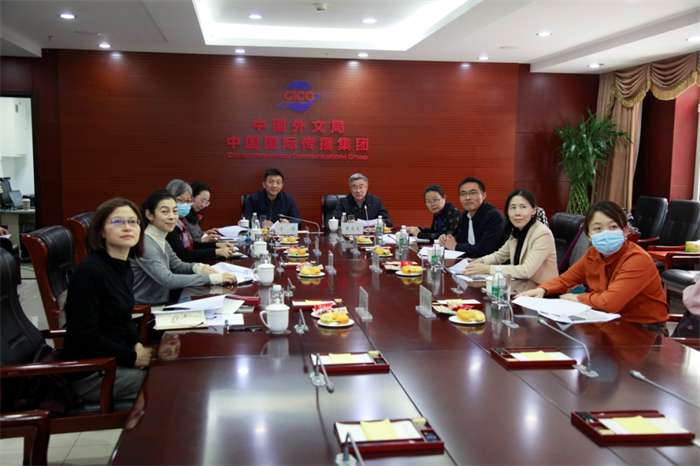 中國外文局副局長、教指委主任委員于濤,上海外國語大學黨委書記、教指委副主任委員姜鋒出席會議并講話,中國翻譯協會常務副會長、教指委專家委員會主任、中國外文局原副局長兼總編輯黃友義主持座談會。
