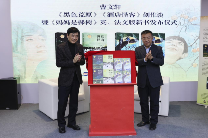 同日,新世界出版社還舉辦了曹文軒《黑色荒原》《酒店怪客》創作談暨《媽媽是棵樹》英、法文版新書發布儀式,副局長劉大為,中國作家、北京大學教授、國際安徒生獎獲得者曹文軒在現場為新書揭幕。