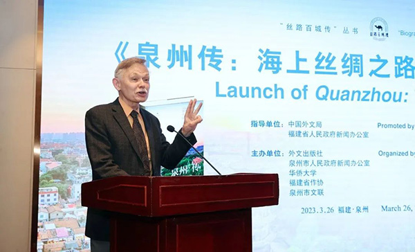 潘維廉表示,泉州是他的第三故鄉,相信《泉州傳》能幫助讀者更好地了解海上絲綢之路起點城市——泉州,更好地領會習近平總書記提出的“一帶一路”倡議。