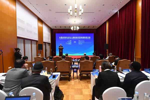 3月27日,“中國式現代化與人類命運共同體”國際研討會以線上線下相結合的方式在北京舉行。來自中國、英國、法國、俄羅斯、日本、巴基斯坦等14個國家的近百位政要、企業代表、國際組織代表,以及有關智庫、高校、研究機構的專家學者參與研討。