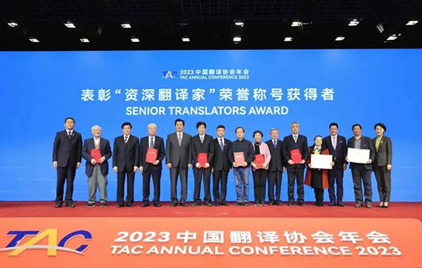 4月3日,由中國外文局指導、中國翻譯協會主辦的2023中國翻譯協會年會在北京召開。開幕會上舉行了“翻譯文化終身成就獎”“資深翻譯家”“翻譯中國外籍翻譯家”表彰儀式,11位翻譯家榮獲“翻譯文化終身成就獎”,115名翻譯家被授予“資深翻譯家”榮譽稱號,6位翻譯家被授予“翻譯中國外籍翻譯家”榮譽稱號。