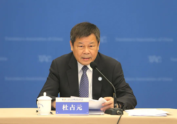 杜占元指出,自第一次常務會長會議以來,中國翻譯協會在第八屆理事會的帶領下,充分發揮全國性社會團體的組織優勢和行業引領作用,在加快構建中國話語和中國敘事體系、加強翻譯領域頂層設計、打造高素質翻譯人才隊伍及拓展國際交流合作等方面做了大量工作,取得了突出成績。他要求,中國翻譯協會要充分發揮自身優勢,協調國內外翻譯資源,集中全力做好習近平總書記著作、重要文件文獻的對外翻譯出版和宣介推廣工作;要圍繞國家戰略方針,從翻譯人才隊伍建設、對外話語體系構建、重點語種建設布局、翻譯技術研發和應用、重大翻譯項目組織協調、翻譯行業管理與服務等領域入手,在不斷增強國家翻譯能力上取得突破性進展;要強化職能定位,發揮行業組織功能,全面引領語言服務產業高質量發展,奮力譜寫新時代中國翻譯事業高質量發展的新篇章,肩負起服務國家發展、促進中外交流的光榮使命。