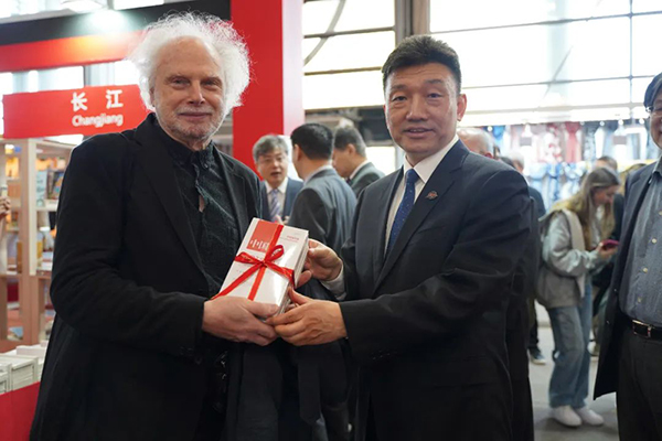于濤向法國嘉賓贈送《中國關鍵詞》主題圖書