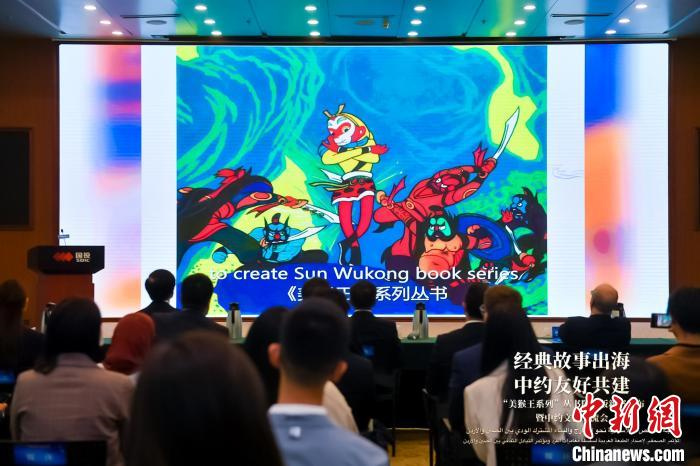 中新網北京5月5日電 (記者應妮)“美猴王系列”叢書阿文版新書發布暨中約文化交流會5日在京舉行?;顒右浴敖浀涔适鲁龊!ぶ屑s友好共建”為主題,邀請編譯團隊及多領域嘉賓,共同圍繞“美猴王系列”叢書阿文版的譯制出版,分享中阿、中約文化交流代表案例,交流中華優秀傳統文化走出去的積極實踐。