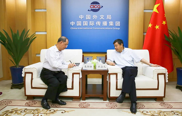 6月14日,中國外文局局長杜占元會見到訪的馬來西亞漢文化中心主席吳恒燦一行。中國外文局副局長于濤,中國外文局亞太傳播中心(人民中國雜志社、中國報道雜志社)、翻譯院、局國際合作部負責同志參加會見。