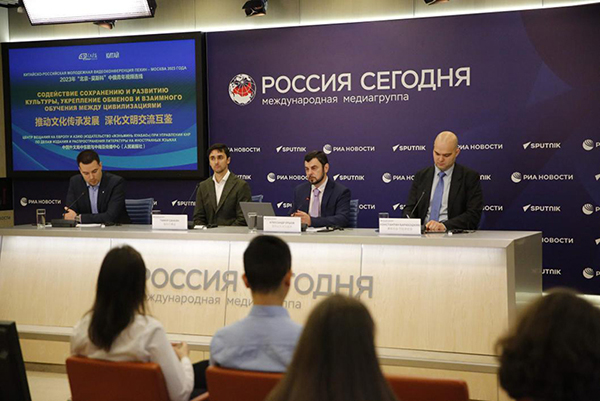 2023年6月30日,中國外文局中東歐與中南亞傳播中心(人民畫報社)聯合“今日俄羅斯”國際通訊社舉辦“推動文化傳承發展 深化文明交流互鑒”——2023年“北京—莫斯科”中俄青年視頻連線活動?;顒釉凇敖袢斩砹_斯”國際通訊社北京、莫斯科兩地演播室同步舉行。