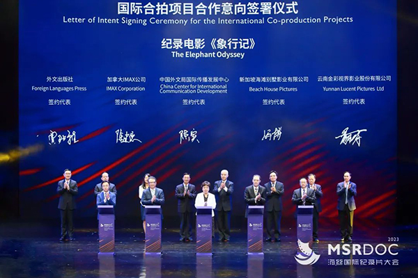 在開幕式上,加拿大IMAX公司、柬埔寨國家電視臺、新加坡海灘別墅影業有限公司、新加坡IFA MEDIA制作公司、美國國家地理頻道、埃及國家電視臺簽約代表分別和中國外文局所屬中國對外書刊出版發行中心(國際傳播發展中心)、福建省廣播影視集團、廣西廣播電視臺等機構簽署了紀錄電影《象行記》和紀錄片《跨越時空的北京中軸線》《海絲雙城記》《永恒的朋友》《田野之上》(國際版)等五部國際合拍影視項目意向合作協議,主題涵蓋中國文化、經濟、生態等多個領域。