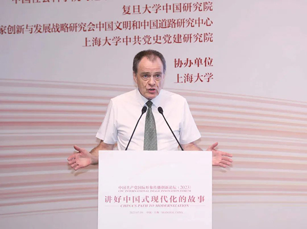7月6日,中國共產黨國際形象傳播創新論壇(2023)在上海舉行。論壇由中國外文局、中央社會主義學院主辦,中國外文局所屬中國對外書刊出版發行中心(國際傳播發展中心)、中共中央對外聯絡部信息傳播局、中國浦東干部學院中國特色社會主義研究院、中國社會科學院習近平生態文明思想研究中心、復旦大學中國研究院、中國國家創新與發展戰略研究會中國文明和中國道路研究中心、上海大學中共黨史黨建研究院承辦,上海大學協辦。來自中央部委、地方省市、國際組織、高等院校、智庫、媒體、企業等的中外嘉賓以及國際青年代表近200人圍繞“講好中國式現代化的故事”主題深入交流研討。