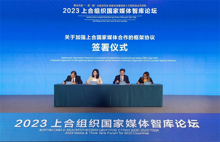 論壇上,哈薩克斯坦《實業報》、“今日哈薩克斯坦”通訊社、中國外文局中東歐與中南亞傳播中心(人民畫報社)、中國—上海合作組織地方經貿合作示范區管理委員會、吉爾吉斯斯坦“卡巴爾”國家通訊社、巴基斯坦《每日郵報》等中外媒體及相關機構共同簽署了《關于加強上合國家媒體合作的框架協議》,旨在堅定弘揚“上海精神”,積極傳播上合信息,推動建設更加公正、合理的國際傳播秩序。