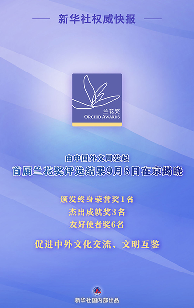 首屆蘭花獎頒獎典禮9月8日在京舉行,頒發終身榮譽獎1名,杰出成就獎3名,友好使者獎6名。