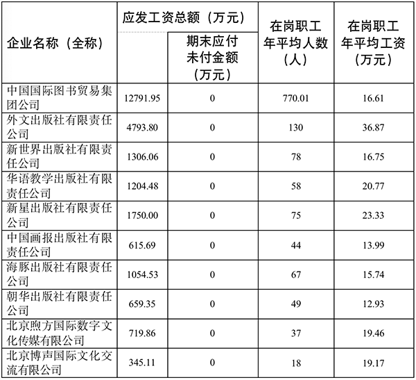 2022年中國外文出版發行事業局所監管企業工資總額信息披露
