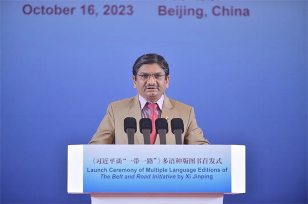 第三屆“一帶一路”國際合作高峰論壇召開前夕,《習近平談“一帶一路”》多語種版圖書首發式10月16日在北京舉行。中共中央宣傳部副部長王綱出席活動并致辭。埃及前總理伊薩姆·沙拉夫發表視頻致辭。中國外文局局長杜占元,巴拿馬駐華大使甘林,敘利亞駐華大使穆罕默德·哈桑內·哈達姆,秘魯駐華大使馬爾科·巴拉雷索,科威特駐華大使賈西姆·易卜拉欣·納吉姆,巴基斯坦伊斯蘭堡和平與外交研究所所長穆罕默德·阿西夫·努爾,中國人民大學重陽金融研究院執行院長、絲路學院副院長王文以及外文出版社榮譽英文主編、國際傳播專家大衛·弗格森等嘉賓出席了首發式。中國外文局副局長兼總編輯高岸明主持首發式。