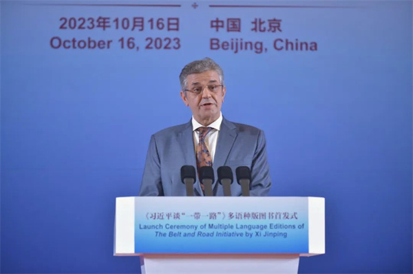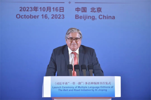 秘魯駐華大使馬爾科·巴拉雷索肯定了十年來“一帶一路”倡議給世界帶來的影響。他指出,“一帶一路”倡議是一項全球性倡議,為政策溝通、設施聯通、貿易暢通、資金融通和民心相通的實現提供了藍圖,同時也是不同文明合作的主要平臺和公共產品。秘魯是“一帶一路”倡議合作伙伴,也是全球發展倡議的“朋友圈”成員,秘中兩國之間關系務實、全面、互信,將攜手推動全球治理朝著更加公正合理的方向發展,促進和平繁榮、合作共贏。他相信《習近平談“一帶一路”》多語種版圖書的出版,能讓世界上更多讀者了解共建“一帶一路”倡議的理念和實踐成果。