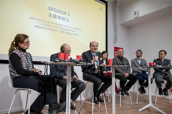 在“尊重世界文明多樣性,促進文明包容與互鑒”主題論壇中,與會嘉賓圍繞如何在當今國際形勢動蕩不安的情況下堅持加大人文交流,攜手打造“和而不同,美美與共”的美好世界展開交流。與會嘉賓表示,中國與法國都是具有全球影響力的文化藝術大國,是東西文明的典范?!拔拿鞑皇枪聧u,而是尋找彼此?!敝蟹?、中歐乃至東西方應加強文明交流互鑒。與會嘉賓建議,以孔子學院搭建中外文化交流的橋梁,促進世界多元文化發展;加強中法博物館交流合作,促進不同民族和文明之間的理解;突出展覽作為文化外交工具在加強國際關系中的作用,在展覽組織過程中融入環境友好型實踐,促進可持續發展及在全球性問題上的國際合作。