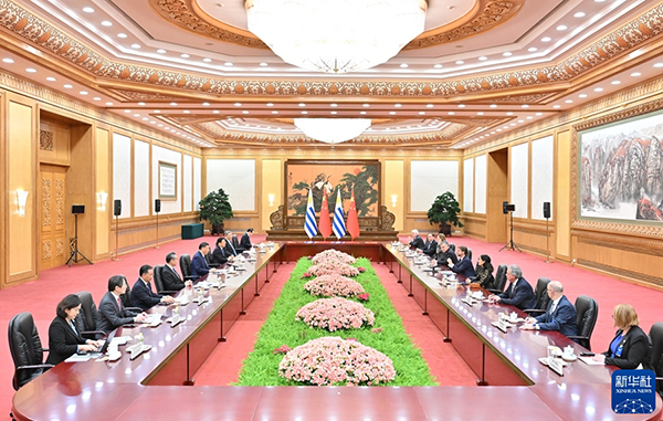 習近平介紹了中國式現代化的內涵意義,表示中方愿同烏方加強治國理政交流,增進政治互信,共享發展機遇,推動實現各自國家的現代化和世界現代化。雙方要密切立法機構、政黨、地方友好交流合作,以簽署共建“一帶一路”合作規劃為契機,加強發展戰略對接,培育服務貿易、數字經濟、清潔能源等領域合作新動能,推動中烏共建“一帶一路”進入高質量發展新階段。歡迎更多烏拉圭優質農牧產品和高附加值產品進入中國市場,鼓勵中國企業赴烏投資興業,希望烏方繼續為中國企業提供良好營商環境。雙方要促進文化、體育等人文交流,為兩國人員往來創造更多便利條件,中方愿向烏方提供更多獎學金名額。