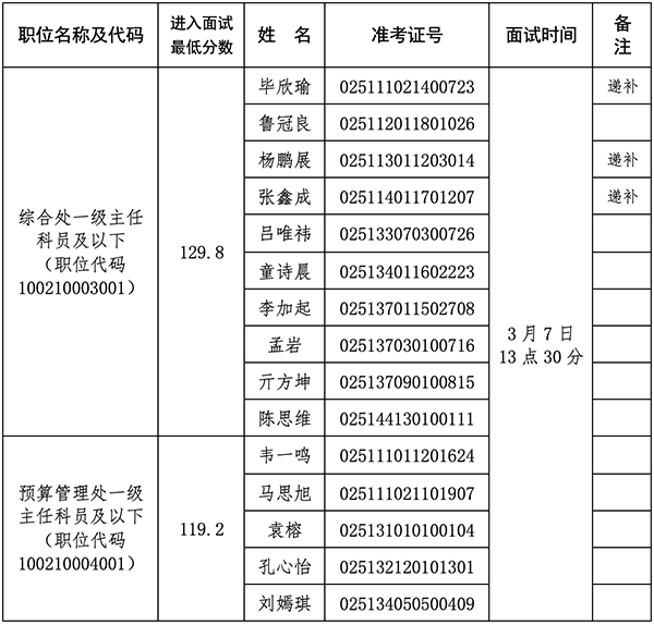 參加面試人數與錄用計劃數比例達到3:1及以上的,面試后根據綜合成績由高到低排序,按不高于2:1的比例確定體檢和考察人選;比例低于3:1的,考生面試成績達到70分以上方可進入體檢和考察。體檢和考察安排將另行電話通知考生。