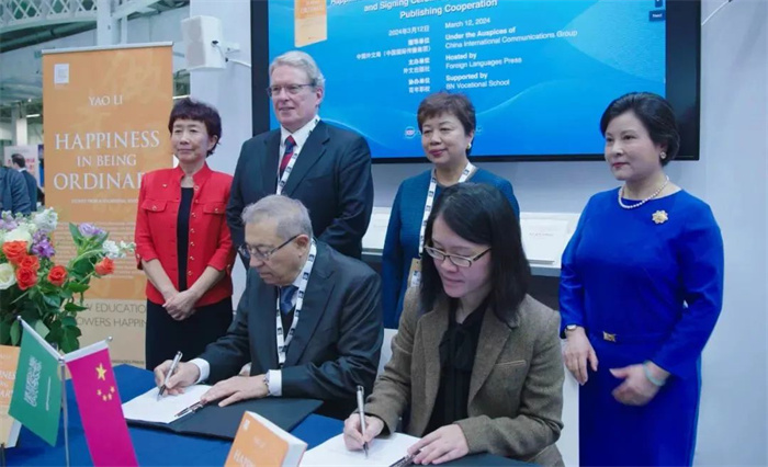 3月12日,由中國外文局指導,外文出版社主辦的《做幸福的普通人——百年職校的故事》英文版首發式暨國際出版合作簽約儀式在2024年倫敦國際書展上舉行。中國外文局副總編輯陳實、中國駐英國大使鄭澤光夫人華梅參贊、愛爾蘭前駐華大使戴克瀾(Declan Kelleher)、阿拉伯科學出版社社長巴薩姆·切巴羅、泛亞婦女協會聯合創始人姚詠蓓、百年職校理事長姚莉,以及外文局所屬單位領導等中外嘉賓30余人出席活動。