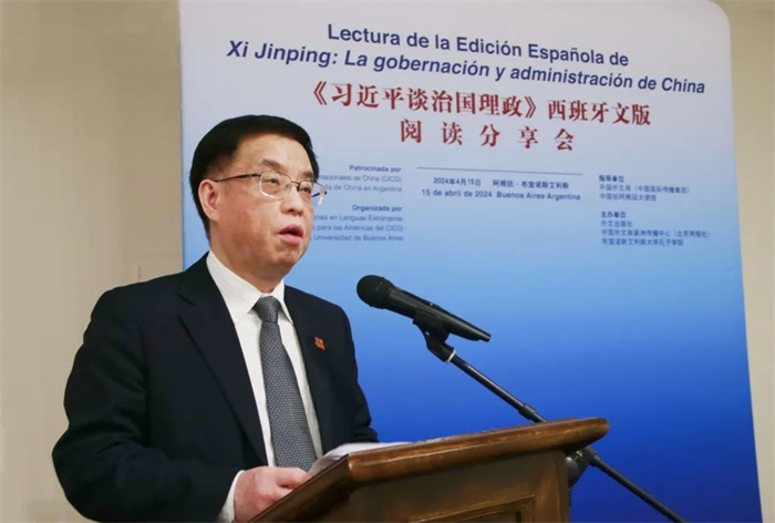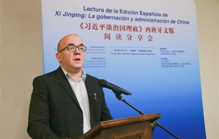 當地時間4月15日,由中國外文局、中國駐阿根廷大使館指導,外文出版社、中國外文局美洲傳播中心(北京周報社)、布宜諾斯艾利斯大學孔子學院主辦的《習近平談治國理政》西班牙文版閱讀分享會在布宜諾斯艾利斯舉行。