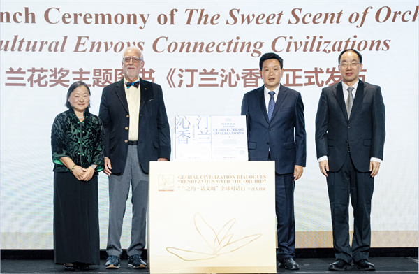 活動現場舉辦了蘭花獎主題圖書《汀蘭沁香:文明交流的使者》發布儀式,該書邀請10位首屆蘭花獎獲獎者詳盡講述自己與中國的故事,同時匯總集納媒體對獲獎者的系列深度專訪內容,以圖文并茂的形式,向全世界的讀者們生動呈現文明互鑒、美美與共的絢麗篇章。