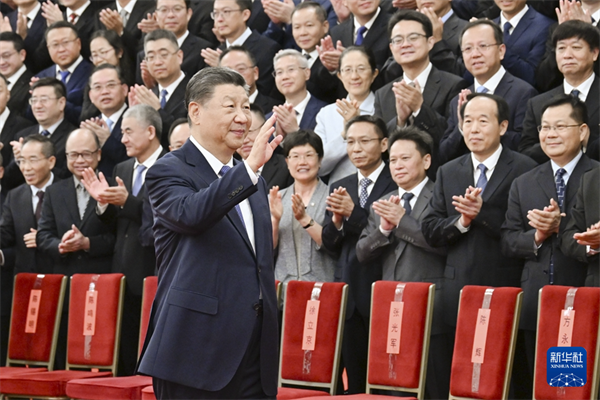 上午10時許,習近平等黨和國家領導人來到人民大會堂北大廳,全場響起長時間熱烈掌聲。習近平等同大家親切握手,并合影留念。