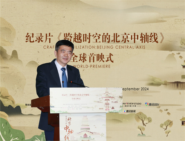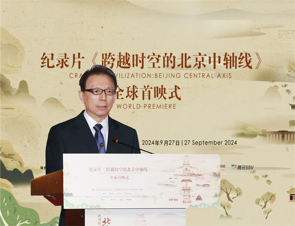 9月27日,中外合拍紀錄片《跨越時空的北京中軸線》在北京舉辦全球首映式。中宣部、國家文物局、中國外文局、北京市委宣傳部、北京市文物局等相關部門領導、專家學者、業內機構和媒體代表等近200人參加活動。