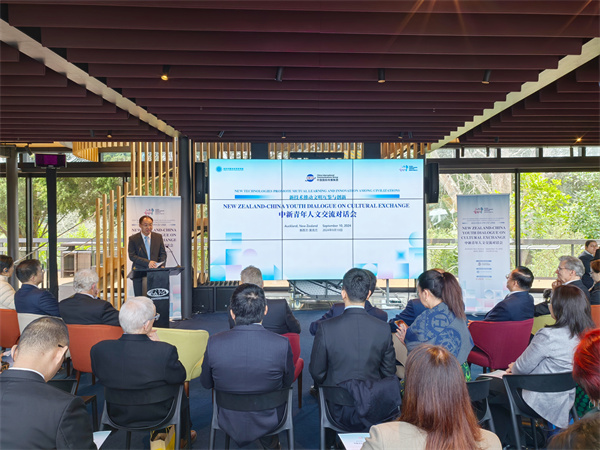 9月10日,由中國外文局主辦,當代中國與世界研究院承辦的中新青年人文交流對話會在奧克蘭毛利文化中心舉行,對話會主題為“新技術推動文明互鑒與創新”。國務院新聞辦公室主任莫高義、新西蘭前總理約翰·基爵士出席并致辭,中國外文局副局長于運全主持開幕式。中國駐奧克蘭總領事陳世杰、新中友協奧克蘭分會秘書長兼副主席利奧·德·格拉夫以及來自新中友好協會、奧克蘭大學、新西蘭當代中國研究中心等關注青年人文交流的近80位中新嘉賓出席活動。