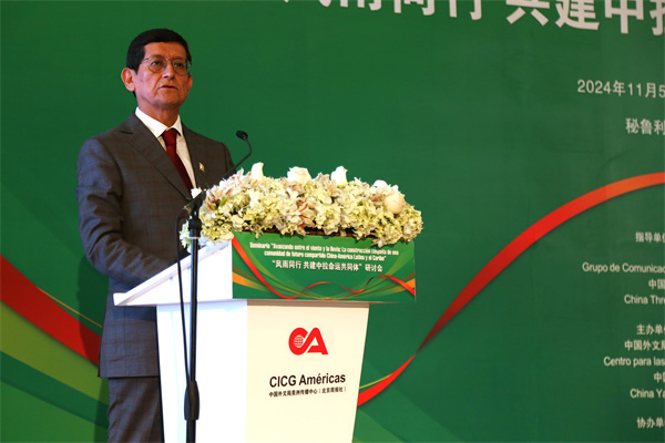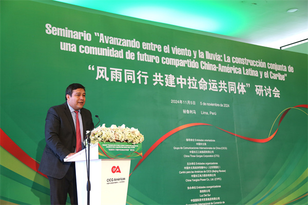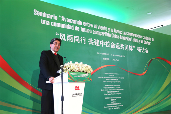 當地時間11月5日,由中國外文局美洲傳播中心(北京周報社)和中國長江電力股份有限公司共同主辦的“風雨同行 共建中拉命運共同體”研討會在秘魯首都利馬成功舉行。中國外文局總編輯高岸明,秘魯國會議員、秘中友好小組主席古斯塔沃·科爾德羅·喬恩·泰,中國長電國際(香港)有限公司副總裁瞿衛華,秘魯前交通部長恩里克·科爾內霍出席研討會并致辭。秘魯中國文化協會主席、原衛生部部長楊莫塔,路德斯公司CEO馬里奧·岡薩雷斯,北京師范大學政府管理學院教授王磊,秘魯國立圣馬科斯大學亞洲研究中心主任、經濟學教授卡洛斯·阿基諾作主旨發言。來自中秘兩國政、企、學、媒體、智庫等各界人士及青年代表近150人參加了活動。