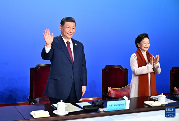 19時58分,在《和平——命運共同體》的樂曲聲中,習近平和夫人彭麗媛,同國際奧委會主席巴赫、亞奧理事會第一副主席霍震霆等步入主席臺,向觀眾揮手致意。全場響起長時間的熱烈掌聲。