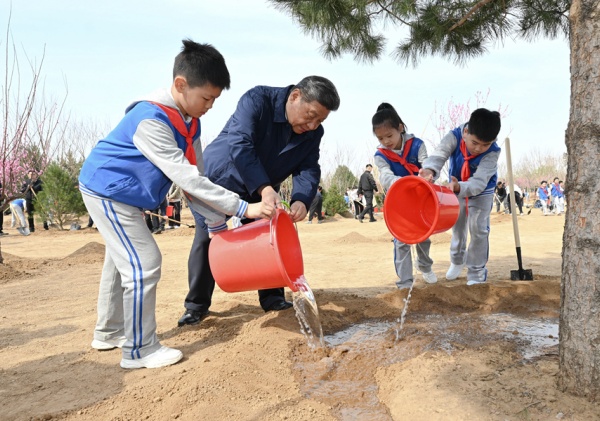 中共中央總書記、國家主席、中央軍委主席習近平4月3日上午在參加首都義務植樹活動時強調,植樹造林是生態文明建設重要一環。各地區各部門要進一步行動起來,動員組織廣大干部群眾積極參與造林綠化,踐行綠色發展理念,弘揚生態文化,匯聚共建美麗中國的磅礴力量,讓祖國大地更加綠意盎然、生機勃發。