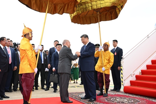 當地時間4月17日上午,國家主席習近平乘專機抵達金邊,應柬埔寨國王西哈莫尼邀請,對柬埔寨進行國事訪問。