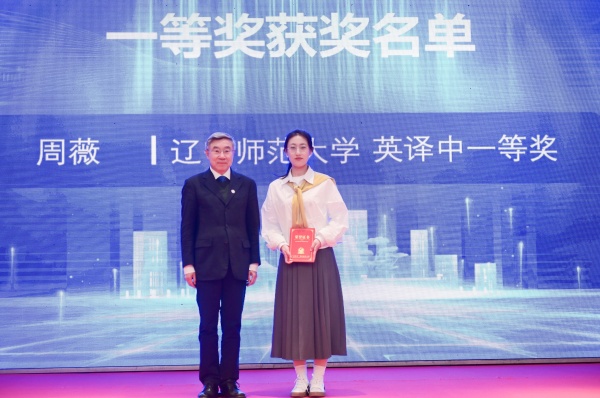 黃友義為“海洋杯”國際翻譯大賽獲獎選手頒發證書