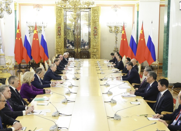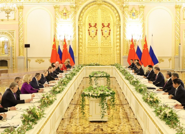 習近平指出,近年來,在雙方共同努力下,中俄關系保持穩定、健康、高水平發展態勢,長期睦鄰友好、互利合作共贏成為兩國關系的鮮明特征。兩國政治互信根基越扎越深,務實合作紐帶越系越牢,人文交流和地方交往越來越紅火,新時代的中俄關系更加從容自信、穩定堅韌。歷史和現實充分證明,持續發展和深化中俄關系,是傳承兩國人民世代友好的應有之義,是雙方彼此成就、促進各自發展振興的必然選擇,也是捍衛國際公平正義、推進全球治理體系改革的時代呼喚。