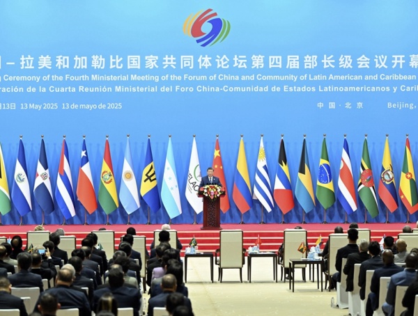 5月13日上午,國家主席習近平在國家會議中心出席中國-拉美和加勒比國家共同體論壇第四屆部長級會議開幕式并發表主旨講話。習近平宣布,中方同拉方攜手啟動五大工程,共謀發展振興,共建中拉命運共同體。