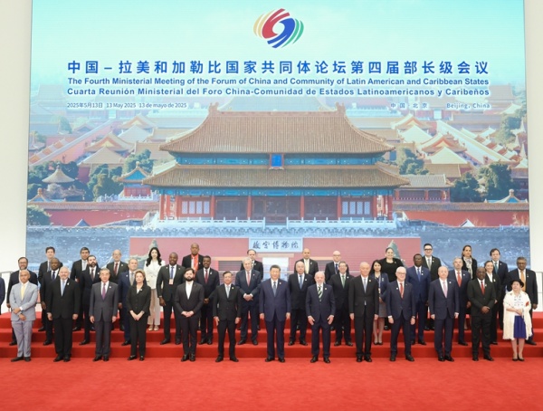 5月13日上午,國家主席習近平在北京國家會議中心出席中國-拉美和加勒比國家共同體論壇第四屆部長級會議開幕式并發表主旨講話。這是習近平同與會嘉賓集體合影。(新華社記者 丁海濤 攝)
