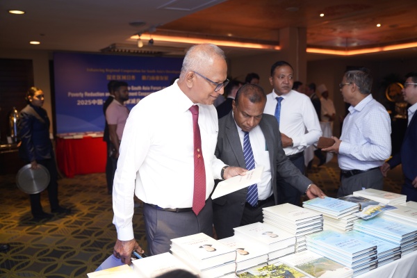論壇期間,與會嘉賓參觀了“2025中國—南亞國家減貧與發展合作論壇主題書展”,斯里蘭卡中國社會文化合作協會獲贈涵蓋中國減貧經驗、鄉村振興等主題的圖書。