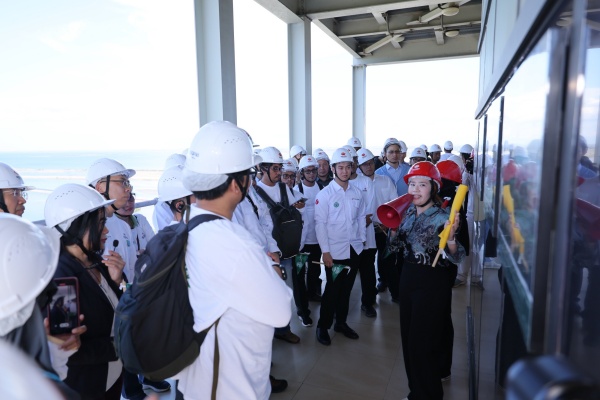 嘉賓們在電廠講解員引導下,參觀了集控室、汽機房、海水淡化系統及煤碼頭等核心生產區域,深入了解企業在綠色發電、節能減排方面的創新實踐。在80米高的鍋爐觀光平臺,講解員講述了企業推進紅樹林及野生動植物保護的歷程?,F場嘉賓對比項目建設初期、基建期的紅樹林生長實景圖,對印尼爪哇電廠在生態環境治理方面的努力和成績給予高度評價。