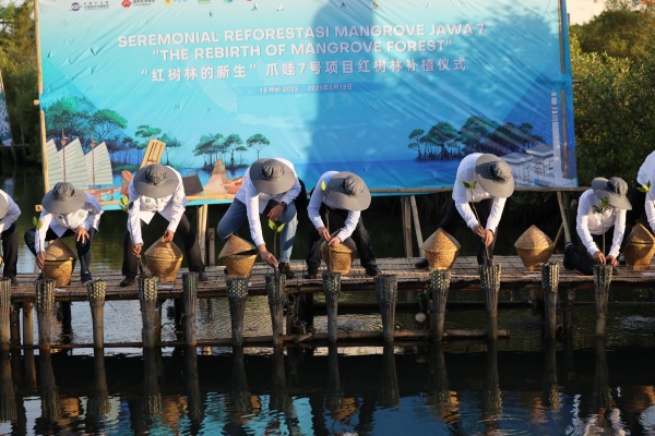 5月18日,“紅樹林的新生”補植活動在印度尼西亞萬丹省國家能源集團爪哇電廠舉行。該活動由中國外文局、國家能源集團、印度尼西亞國家電力公司聯合主辦,是“紅樹林的新生”中國—印尼可持續發展人文交流系列活動的重要環節。來自中國、印尼、柬埔寨、馬來西亞等國的政府官員、專家學者、社區代表及媒體記者等40多位嘉賓齊聚國能印尼爪哇電廠,共同見證紅樹林生態保護成果。