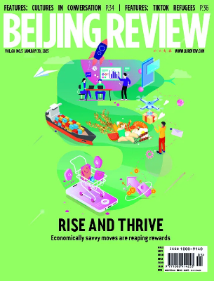 本期封面文章回顧了2024年中國經濟在消費、新質生產力、外貿等多方面的表現。2024年中國經濟增長預期目標順利實現,經濟總量邁上130萬億元臺階,國內生產總值(GDP)同比增長5%。在外部壓力加大、內部挑戰增多的復雜形勢下,中國經濟總量向上、結構向優、動能向新,釋放持續回升向好的信號。接受《北京周報》采訪的專家表示,國際環境錯綜復雜,貿易保護主義愈演愈烈,但隨著發展新動能新優勢不斷壯大、一攬子政策效果不斷顯現,經濟向好發展積極因素累積增多。2025年,我國經濟將延續穩中有進態勢。